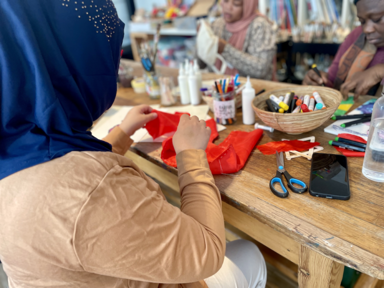 Nach einer kurzen Führung durch die Ausstellung können die Teilnehmenden in einem Workshop kreativ werden. Sie lernen verschiedene Techniken kennen und setzen die Themen der Ausstellung um.