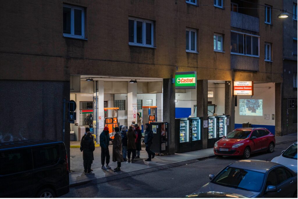 “VIA TANKE” by Lukas Lex transforms a former petrol station into a neighbourhood meeting point. Starting from the question “What happens here if no more fuel flows?”, the station has already been repurposed as a table tennis court, exhibition space, and open-air cinema.